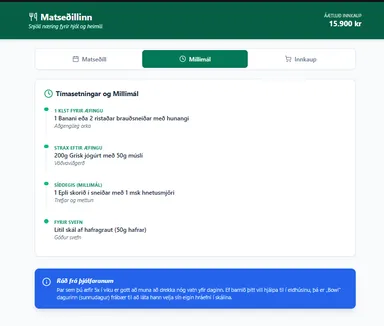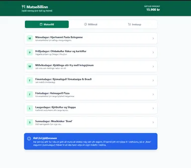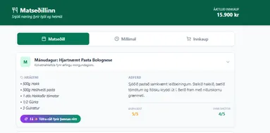 This can be seen as an addon to a service for grocery stores in iceland, based around their products and online shopping experience for customers. One click - Get menu - One click - Buy groceries. And don't worry about a thing! and with time the AI will learn more about your family and what you like and don't like.