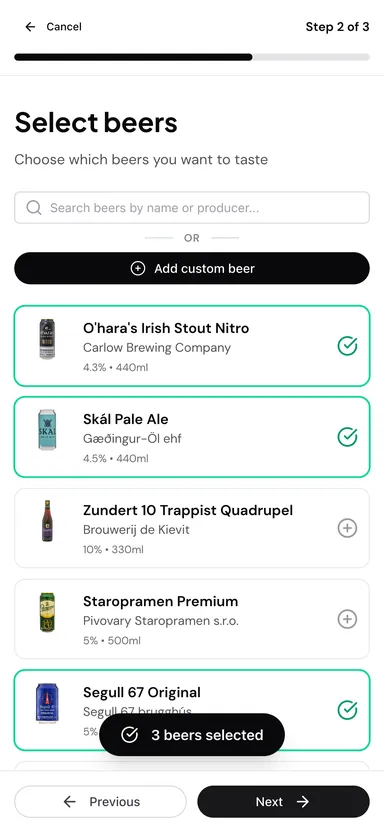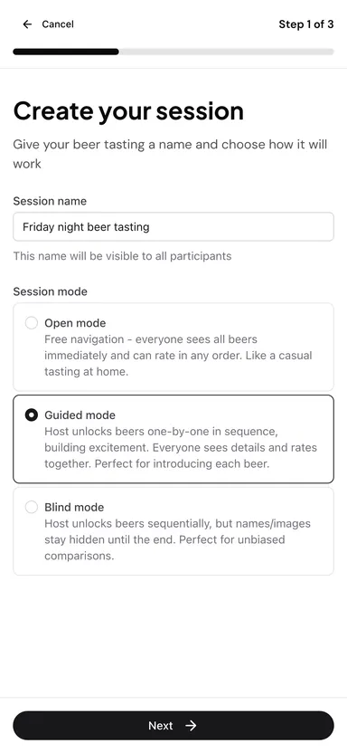 Create a tasting session, invite others to join, and rate beers in real time. Ratings are designed to be quick and social, making Smakk ideal for casual group tastings, work events, or get-togethers.