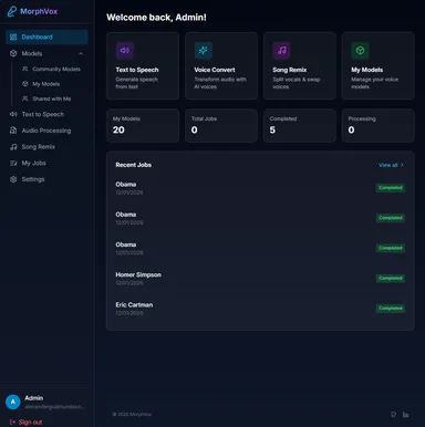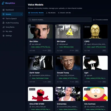MorphVox is my attempt to take the RVC ecosystem and turn it into something you can actually use as a product: a web app where you can browse voice models, convert voice in real time, generate TTS, and do full song voice swaps — all in one place.