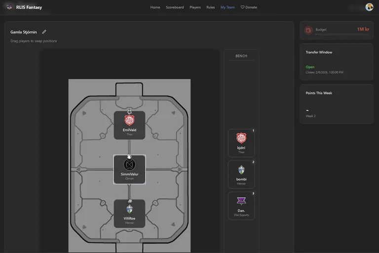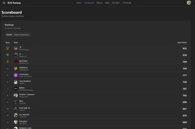 Fantasy league vefsida fyrir íslensku Rocket League deildina (RLIS). Notendur byggja draumaliðið sitt og keppa sín á milli vikulega.