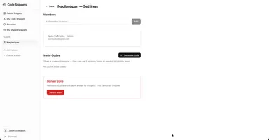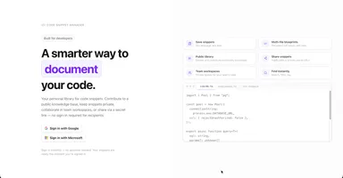 The app supports a public community library where anyone can contribute knowledge, private personal snippets with optional secret share links (no login required for recipients), and private team workspaces with invite codes. Teams are fully self-service — any user can create one, invite members via a reusable code, and manage the workspace. Snippets support threaded comments so teams can discuss code inline. Authentication is handled through Google and Microsoft OAuth (NextAuth).